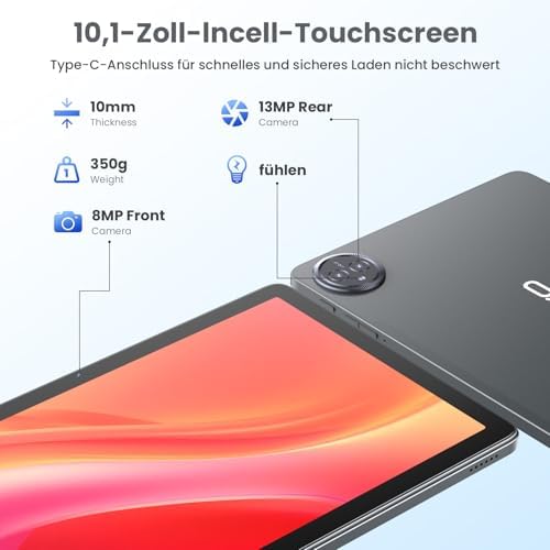 🏠 【16GB RAM + 128GB ROM (1TB erweiterbar)】 8GB physischer + 8GB virtueller RAM – Schneller als Standard-Android Tablets. Großer Speicher für Apps/Games – Erweiterbar via microSD-Karte (bis 1TB). Einfach und praktisch für Unterhaltung und Arbeit. Sie können Spiele, Videos, Musik, E-Books, Fotos und wichtige Dateien problemlos speichern.