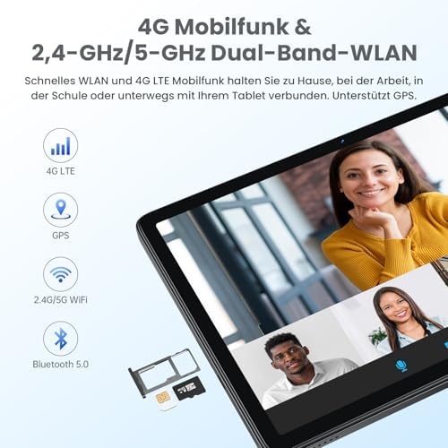 📶 【4G LTE Tablet + Dual-Band WiFi Tablet】 Das Tablet PC unterstützt Dual-SIM-Support (4G VoLTE) – Surfen & Telefonieren ohne WiFi (SIM-Karte separat). WiFi 6 (2.4G/5G) & Bluetooth 5.0 – Stabile Verbindung für Smart Tablet zu Hause & unterwegs. Zudem unterstützt das Tablet GPS-Satellitenpositionierung und 5G-Netzwerke für präzise und schnelle Straßennavigation.