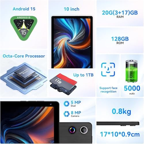 Dieses 10,4-Zoll-Touchscreen-Android-Tablet feiert 8-Kern-CPU und den A523-Chip. Der Multitasking-Modus ist ideal für benachbarte Aufgaben, und die 20GB (3+17) RAM und 128GB ROM können mit einer TF-Karte bis zu 1TB erweitert werden. Vorgeinstalliert mit Google Play Store, werden Sie Ihre benötigten Apps schnell herunterladen.