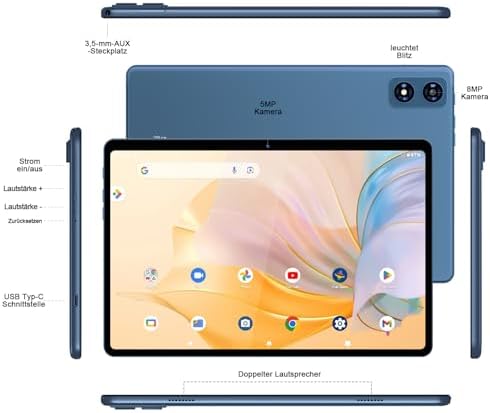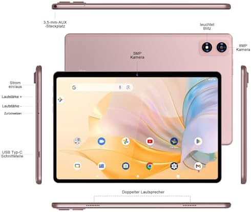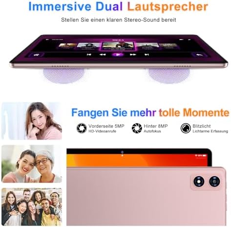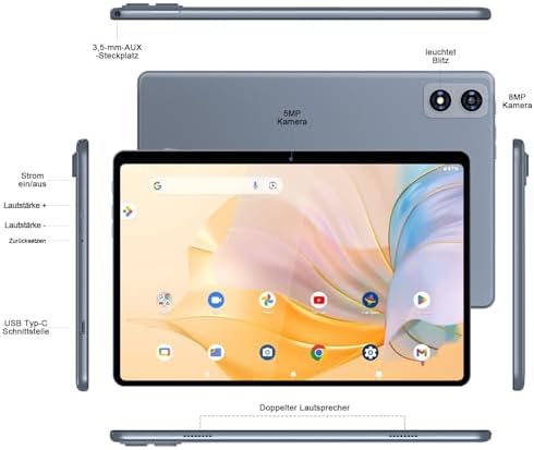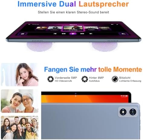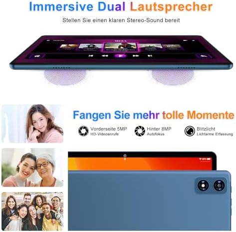 Mit dem neuesten Android 14 OS ist das Tablet ausgestattet. Sie können die Berechtigungen für die Verwendung von Apps überprüfen und einstellen, um Ihre Privatsphäre besser zu schützen und Ihre persönliche Sicherheit zu verbessern. Dies bringt einen umfassenderen und qualitativ hochwertigen Service für Benutzer. Das Tablet ist mit einem leistungsstarken T606 8-Kern-Prozessor mit 2,0 GHz ausgestattet, der ein reibungsloses und sicheres Nutzungserlebnis ermöglicht. Gesichtserkennung und Entsperrung für einen schnellen Zugriff auf das Tablet bieten auch zusätzliche Vorteile.