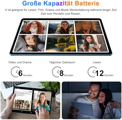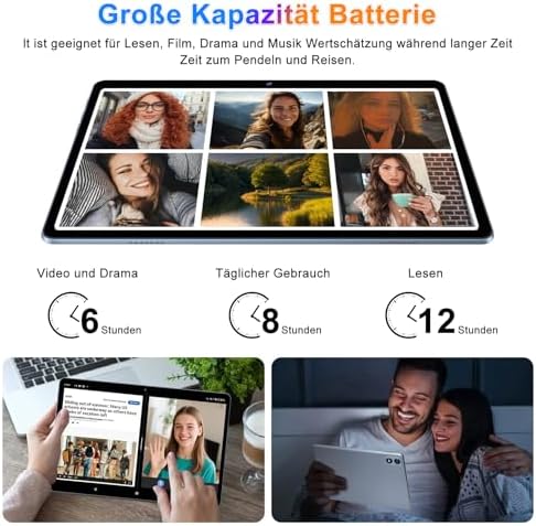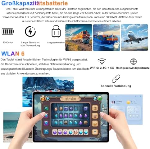 Das Tablet bietet 22GB RAM (6GB RAM + 16GB RAM erweiterbarer Speicher) für schnelles, verzögerungsfreies Multitasking. Mit 128 GB Speicher und der Möglichkeit, über eine Micro-SD/TF-Karte auf bis zu 1 TB erweitert zu werden, können Sie eine große Anzahl von Bildern, Dokumenten, Spielen, Filmen, Büchern, Musik und mehr speichern. Dies macht es ideal für Benutzer, die viel an dem Gerät arbeiten und speichern müssen.