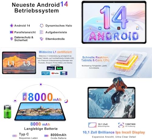 【Neues Android 14 OS + Octa-Core Prozessor】