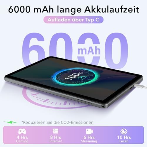 Bleiben Sie überall mit erweitertem 5G-WLAN verbunden oder genießen Sie stabilen 2,4 GHz-WLAN-Surfing. Bluetooth 5.0 ermöglicht eine einfache Paarung und verbessert die Geschwindigkeit und Reichweite. Der 6000mAh-Akku bietet längere Ladezeit und ununterbrochenes Surfen, Videowiedergabe und Spiele über eine einzige Ladezeit.