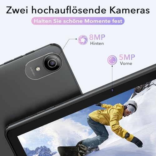 Genießen Sie Ihre liebsten Filme und Spiele auf dem 10,1-Zoll-HD-IPS-Display mit 1280 * 800 Auflösung. Dieses Display bietet breite Blickwinkel und lebendige Farben. Die IPS-Technologie sorgt dafür, dass jeder Blick Spaß masculine Klarheit und Farben. Sie können High-Definition-Inhalte von Plattformen wie Netflix und Amazon Prime Video in höchster Klarheit streamen. Erfassen Sie klarer mit den 5 MP vorderen und 8 MP hinteren Doppelkameras.