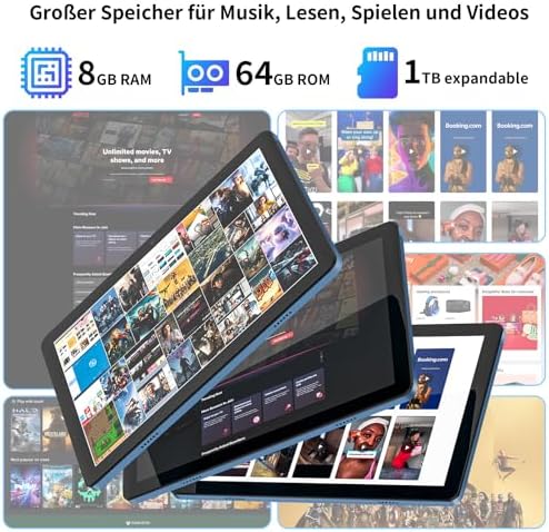 8 GB RAM + 64 GB Speicher – flexibel & erweiterbar: Mit 8 GB RAM (3 + 5 GB virtuell) und 64 GB internem Speicher (erweiterbar bis zu 1 TB per microSD) bietet das Tablet genügend Platz für Apps, Videos, Musik und mehr. GMS-zertifiziert – laden Sie beliebte Apps wie Netflix, TikTok oder Instagram direkt herunter.