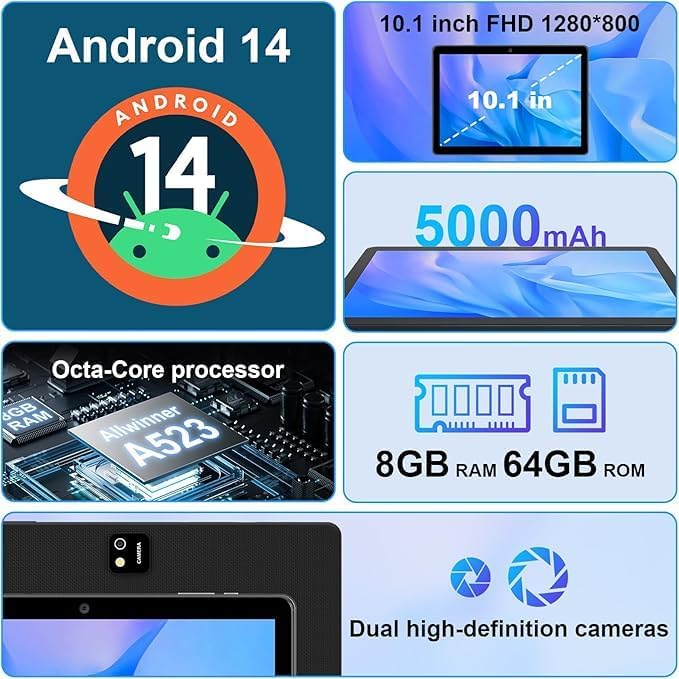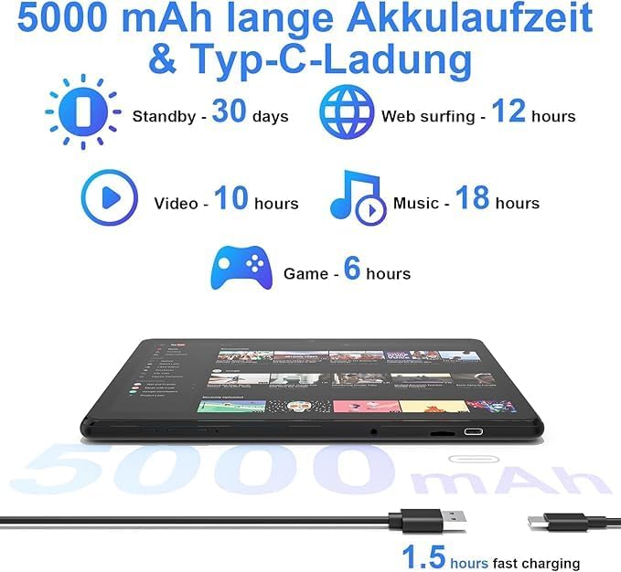 ✅ Rundum aufgewertet – Premium-Ausstattung zum Top-Preis: Ab Android 14 auf Android 15, von 5000 mAh auf 7000 mAh, von Kunststoff auf Metallgehäuse – dies Upgrade überzeugt in jeder Hinsicht. Mit WiFi 6 (2.4 + 5 GHz), leistungsstarkem 8-Kern-Prozessor, großem Akku und praktischem Zubehör bietet dieses Tablet ein herausragendes Preis-Leistungs-Verhältnis – ideal für Alltag, Homeoffice und Entertainment. (Android 15 Go wurde speziell entwickelt, um auf kostengünstigen Geräten eine reibungslose und effiziente Nutzung zu ermöglichen.)➡️In der Preisklasse unter 80 € zählt diese Ausstattung zu den besten am Markt.
