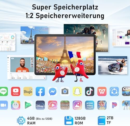 12GB (4GB + 8GB Erweiterung) RAM + 128GB ROM (bis zu 2TB erweiterbar): Dieses Tablet bietet beeindruckende Leistung mit 12GB RAM, bestehend aus 4GB Basisspeicher und 8GB erweiterbarem Speicher, sowie 128GB internem Speicher. Sie können den Speicherplatz bequem bis zu 2TB erweitern, um umfangreiche Datenspeicherung und flüssiges Multitasking zu ermöglichen.
