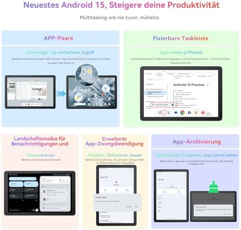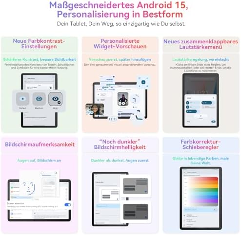 Das Tab60 Pro läuft auf Android 15 und bietet einen schnelleren Umgang mit den Apps, verbesserten Datenschutz und eine optimierte Benutzeroberfläche.