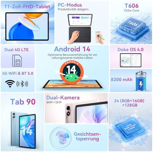 Mit dem 10.92-zentimeter großen Bildschirm des Blackview Tab90 genießen Sie eine atemberaubende Betrachtung. Die Smart K Stereo-Lautsprecher bieten umfassende Umhüllungslautstärke, während die Eye-Friendly-Modus das Augenschutzdesign weiter optimiert. Das/Tablet läuft auf Android 14 und ermöglicht es Ihnen, lesend, surfern, spazieren zu gehen und Videos zu steimlen, das perfekte Gelingen.
