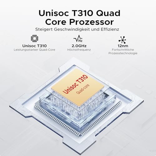 Der DOOGEE Tab A9 Tablet 10+ Zoll wird von Piper T310, eines der neuesten Quad-Core-Prozessoren mit ARM Dynamiq-Architektur, betrieben. Er enthält einen leistungsfähigen 2,0GHz Cortex-A75-Core. Diese einzigartige Konfiguration bringt eine Steigerung des einspiralen Leistungsvermögens um 120%. Darüber hinaus ist der T310 konzipiert, um niedrige Energieverbrauch zu besitzen, mit resultierendem niedrigem Wärmeabzug und längeren Batteriestandzeiten.