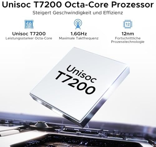 • Octa-Core Unisoc T7200 Prozessor: problemloses Bewältigen von anspruchsvollen Anwendungen.