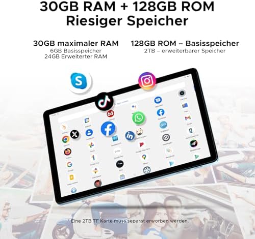 • 30GB RAM + 128GB ROM: 6GB LPDDR4X RAM und bis zu 24GB virtueller Speicher bieten reibloses Multitasking und umfangreiche Anwendungen.