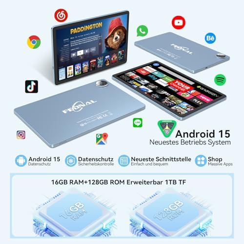 Das FEONAL 11-Zoll-Android-Tablet ist mit dem neuesten Android 15-Betriebssystem ausgestattet, das es Ihnen ermöglicht, ermöglicht flüssige, schnelle und effiziente Bedienung. Es bietet mehr Kontrolle über Ihre Privatsphäre und Daten und unterstützt mehrere Bildschirme, um professionelles Vergnügen zu ermöglichen.
