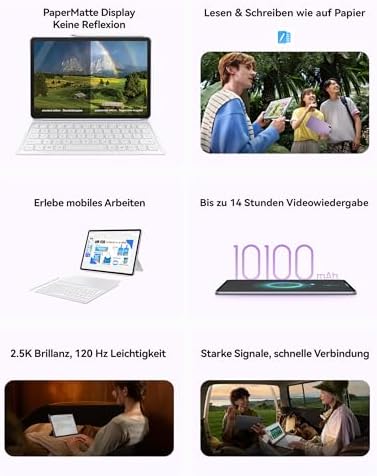 Das 11,5 Zoll HUAWEI FullView Display mit einer 16:10 Seitenverhältnis bietet exzellente Detailswiedergabe. Dank der 2.2K Auflösung und der 120 Hz Bildwiederholfrequenz genießt du einen überraschenden visuellen Erfolg. Das Display ist runde gestaltet und passt sich perfekt deinem Blickfeld an.