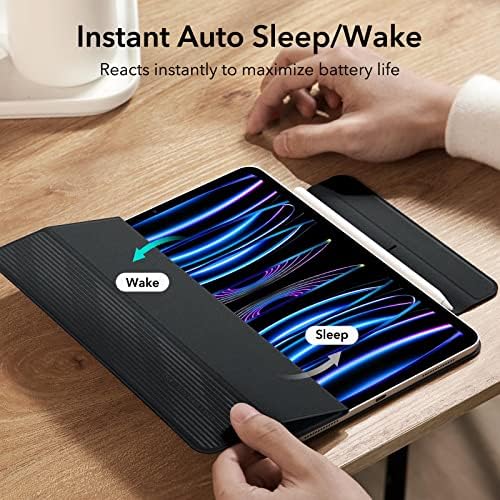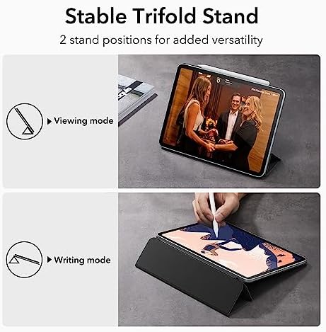 Die magnetische dreifach gefaltete Abdeckung lässt sich locker zum Betrachten oder Schreiben in einen stabilen Ständer umfalten. Dies gibt dir einen bequemen Winkel für die Betrachtung deiner Lieblingsvideos und die Notizen mit deinem Pencil machen.