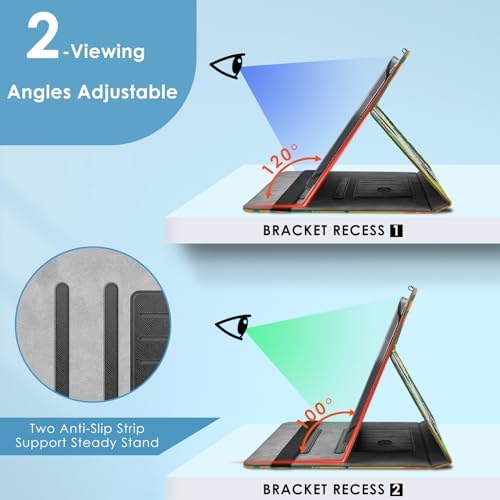 2-Ansichts-Winkel: Die Hülle für 10 Zoll ermöglicht eingestellbare, bequeme Winkel, um den Betrachterstand oder den Tippenstand einzugestellen. Damit Ihrer Tablette funktioniert es wie ein Laptop, macht es perfekt zum Tippen und Videos ansehen. Vermeiden Sie Gelenkschmerzen und lassen Sie Ihre Hände für andere Unterhaltungen frei.