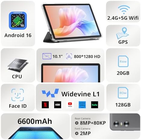 Mit einem 6000 mAh Lithium-Ion-Akkuschutz bietet das SVITOO Tablet 10 bis zu 10 Stunden Videos, 8 Stunden Gaming oder 12 Stunden Web-Browsing ohne Probleme. Durch die Energieeffizienz des T606-Chips und das Android 15-System dauert das Gerät lange an, selbst wenn du unterwegs bist.