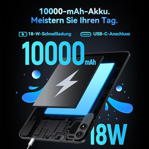 Unterstützen Sie Ihre Abenteuer mit einem massiven 10000-mAh-Akku, der problemlos von Sonnenaufgang bis Sonnenuntergang hält. Wenn der Strom zur Neige geht, lädt das enthaltene 18W-Schnellladegerät die Hälfte Ihres Akkus in weniger als einer Stunde wieder auf. Die 13-MP-Rückkamera (softwareinterpoliert auf 16 MP) erfasst klare Dokumente und Reiseerinnerungen, während die 5-MP-Frontkamera für kristallklare Videoanrufe und Online-Fitnesskurse perfekt ist.