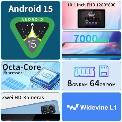 Android 15 & Achtkern-Prozessor: Mit dem neuesten Android 15 Betriebssystem genießen Sie eine benutzerfreundliche Oberfläche, verbesserte Perfomance und erweiterte Funktionen. Der leistungsstarke Achtkern-Prozessor sorgt für schnelle Ladezeiten und reibungslose Performance, auch bei anspruchsvollen Anwendungen. Ob Sie Multimedia-Inhalte genießen, arbeiten oder spielen, wird Ihnen der Prozessor mit seiner herausragenden Reaktionsgeschwindigkeit und hohe Effizienz zusagen.