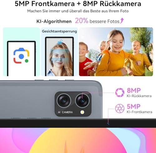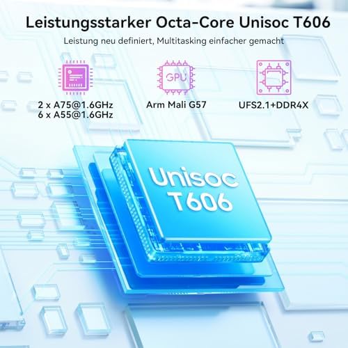 OCTA-CORE PROZESSOR: TABWEE T20 Tablet dank des schnellen T606-Achtkern-Prozessors für nahtloses Multitasking, Gaming und Produktivität. Das neueste System ermöglicht personalisierte Einstellungen, intelligente Automatisierung und eine intuitive Bedienung durch Widgets, Split-Screen und Mehrbenutzer-Modi.
