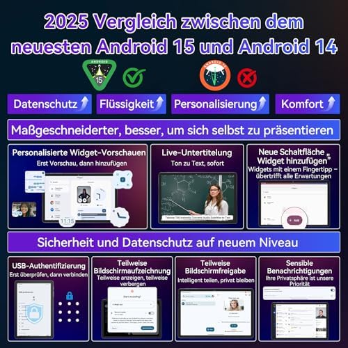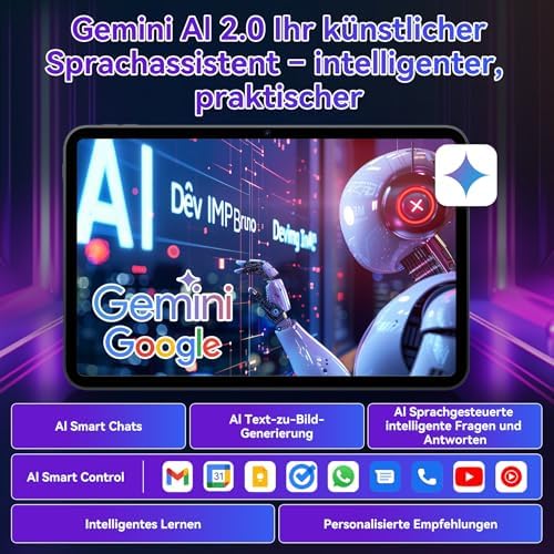 Android 15 Tablet: Intelligenter & schneller mit Gemini AI – Das TABWEE T60 Pro Android 15 Tablet bringt 11 Zoll in einer weichen Gripflächenschicht mit verbesserter Datenschutzkontrolle, längerer Akkulaufzeit durch adaptive Optimierung und optimierten Bedienungsoberflächen. Angetrieben vom leistungsstarken Unisoc T7280 Octa-Core-Prozessor ermöglicht es reibungsloses Multitasking und ein absolut verzögerungsfreies Spielerlebnis.
