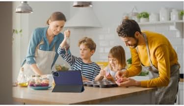 – Im ausgeklappten Zustand kann es als stabiler Ständer verwendet werden, der das Tablet in verschiedenen Winkeln stützt.