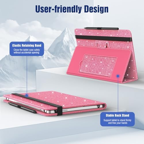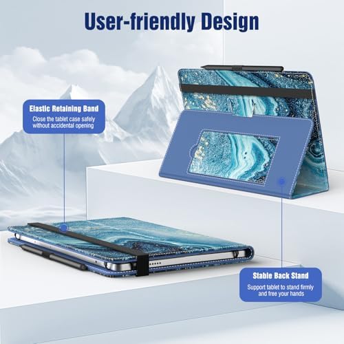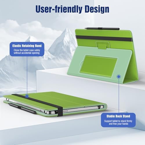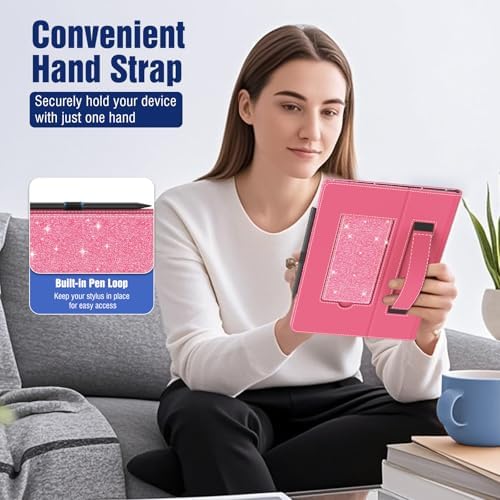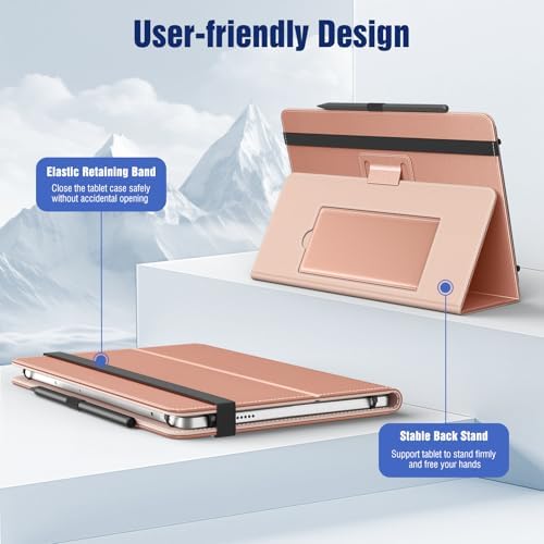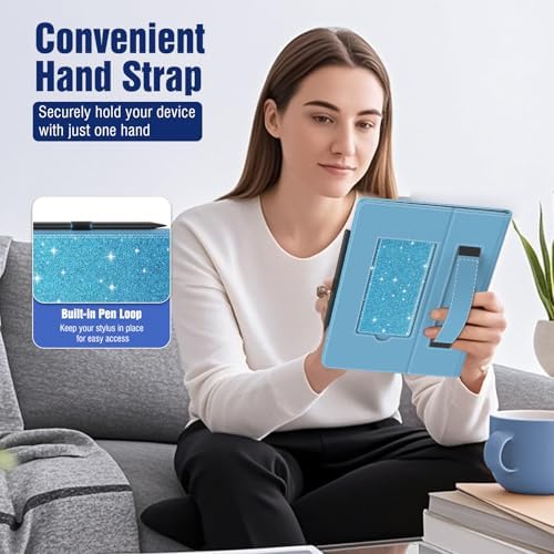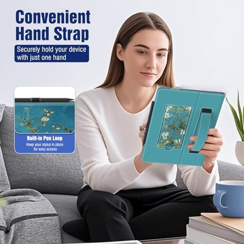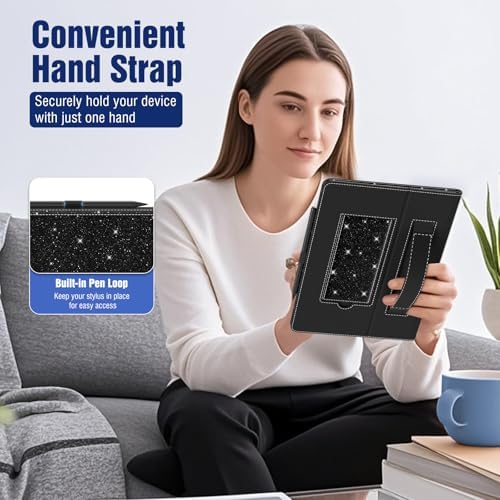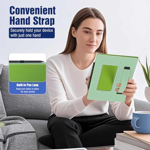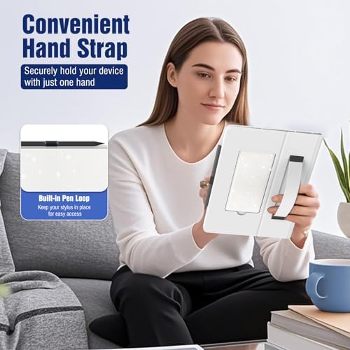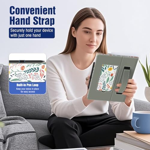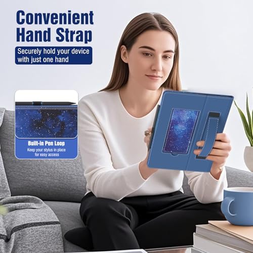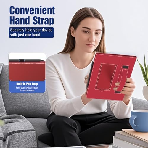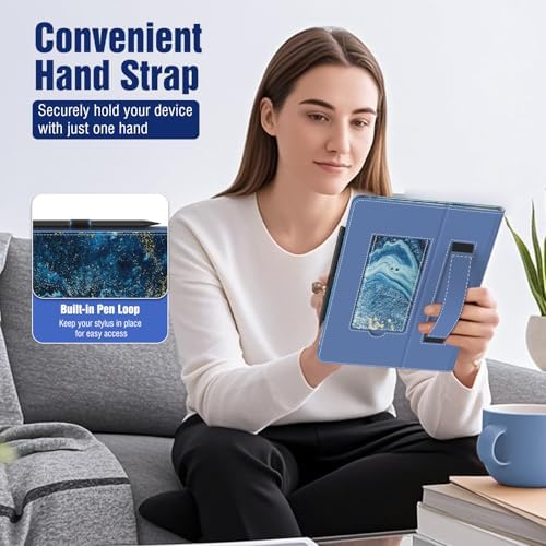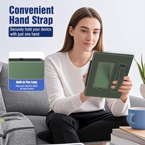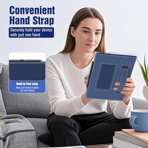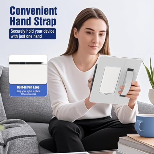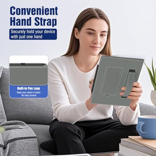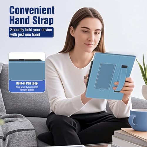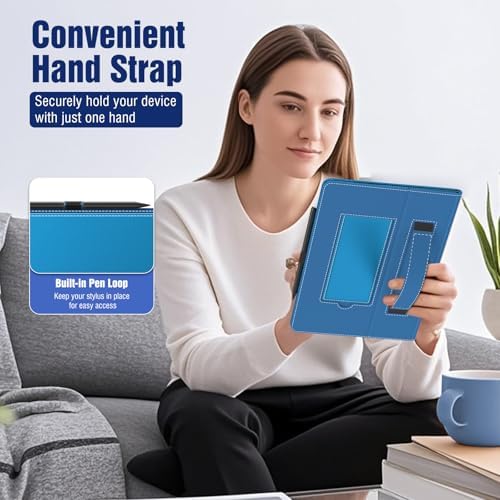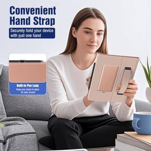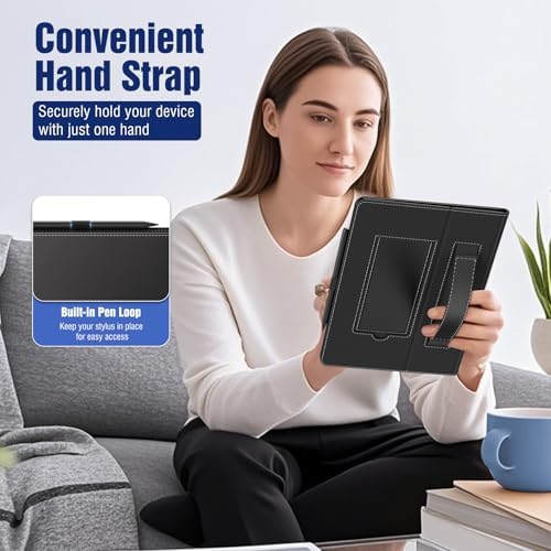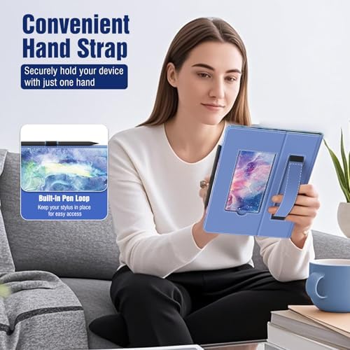 Mit der integrierten Handschlaufe können Sie das Tablet mit einer Hand bedienen, was eine komfortable Benutzererfahrung bietet. Der elastische Riemen hält die Hülle geschlossen und schützt das Tablet.