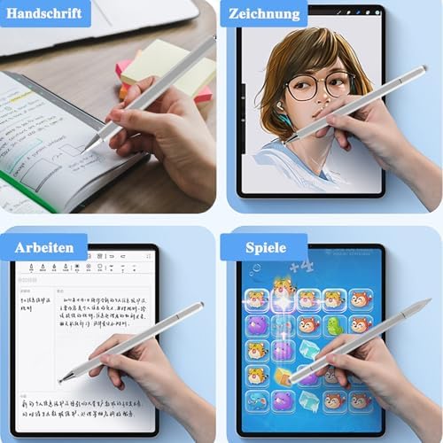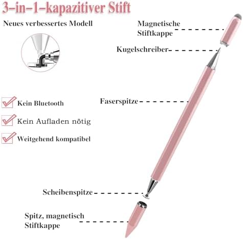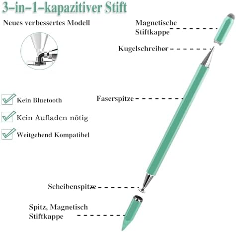Unser 3 in 1 Tablet Stift ist einfach zu verwenden und die Spitze ist ersetzbar. Wenn die Spitze ab⭐gt oder Sie eine andere Farbe bevorzugen, können Sie sie leicht ersetzen. Es ist nicht notwendig, ihn zu laden oder Bluetooth zu verwenden. Der Ladehaken ist praktisch, auch sehr für langes Sonderzeiten im Einsatz.