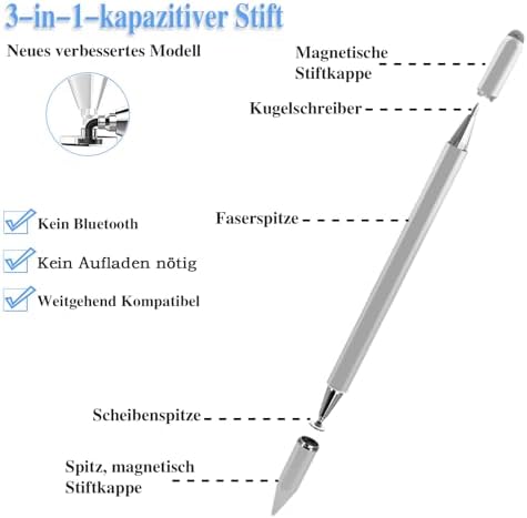 Unser 3 in 1 Stift passt zu fast allen Touchscreen-Geräten, einschließlich Apple iPad, iPhone, Kindle und Smartphones. Wenn Sie Fragen zu unserem Stift haben, kontaktieren Sie uns gerne. Wir bieten ein 1-jährigeges Zusicherung und eine 1-Monats-Geld-zurück-Garantie und Austauschpolitik.