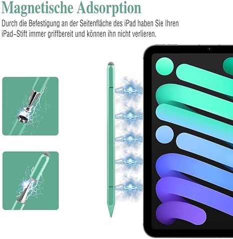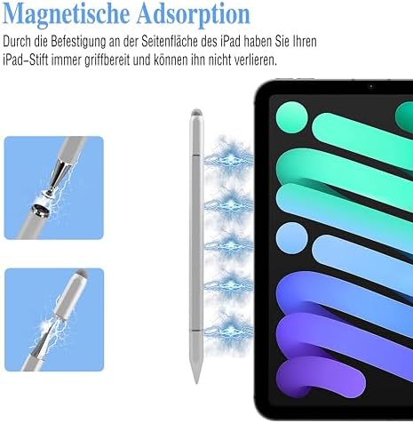 Der 3 in 1 Apple Stift für iPad verfügt über ein magnetisches Kammernachspage. Stellen Sie das Kammernachspage einfach ans Ende des Stifts, und es wird magnetisch angezogen. Dies bietet optimale Schutz für die Stiftspitze vor Schaden und Verlust.