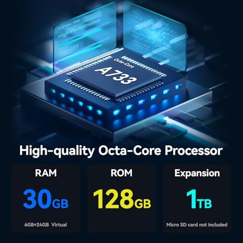 Intelligente Speichererweiterung, hohe Geschwindigkeit und große Speicherkapazität: Der Tabletcomputer hat 6 GB physische RAM und 24 GB virtuelle Speichererweiterung, sodass er insgesamt 30 GB RAM hat. Dies gewährleistet glatte Viertaskoperation und stabilen Hintergrundprogrammierung. Der eingebaute 128 GB Speicher erweiterbar bis zu 2 TB über ein microSD-Kartentreebgerät ist ideal für das Speichern großer Mengen an Dokumenten, Medien und App.