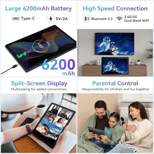 6200 mAh lange Akku-Auslastungszeit + eine Klick-Steuerle-Modus für ein angenehmere Arbeiten und Lernen: Der 10-Zoll-Tabletcomputer ist mit einem großen 6200 mAh-Akku ausgestattet, der erlaubt das Erweitern von Videowiedergabe und Internet-Surfen. Schalten Sie auf einen Klick Steuerle-Mode um, um einen externen Tastatur und Mausanschluss zu ermöglichen, was einen leichten Desktop-Bereich für verschiedene Produktionsszenarien, einschließlich mobilen Work und Abstandslernen, perfekt macht.